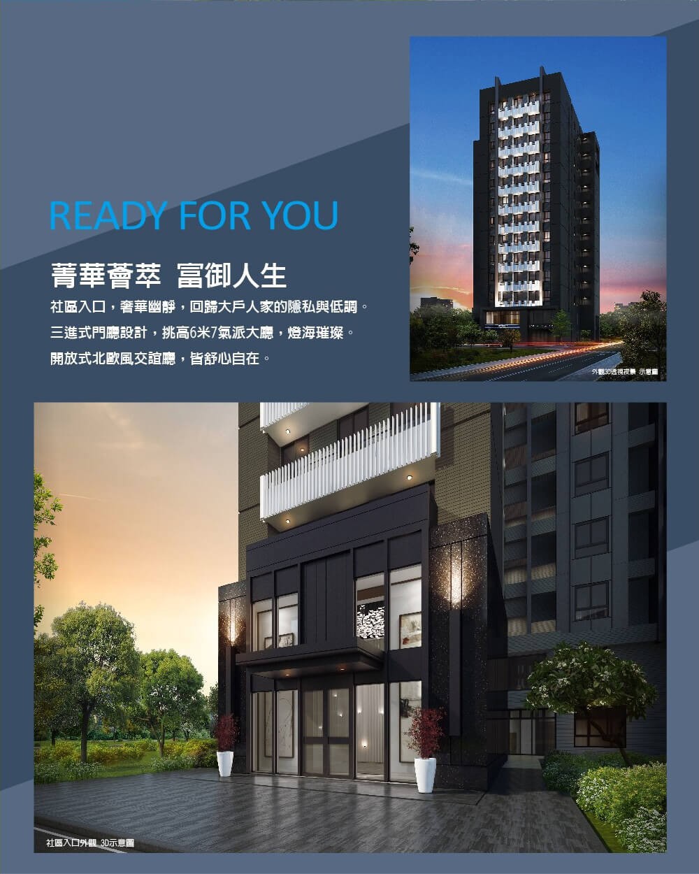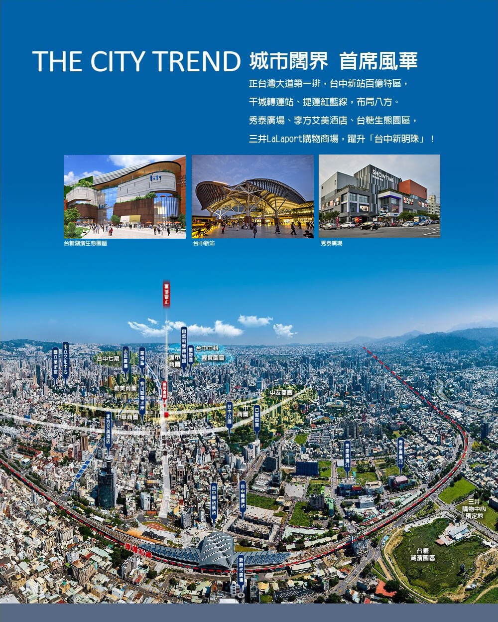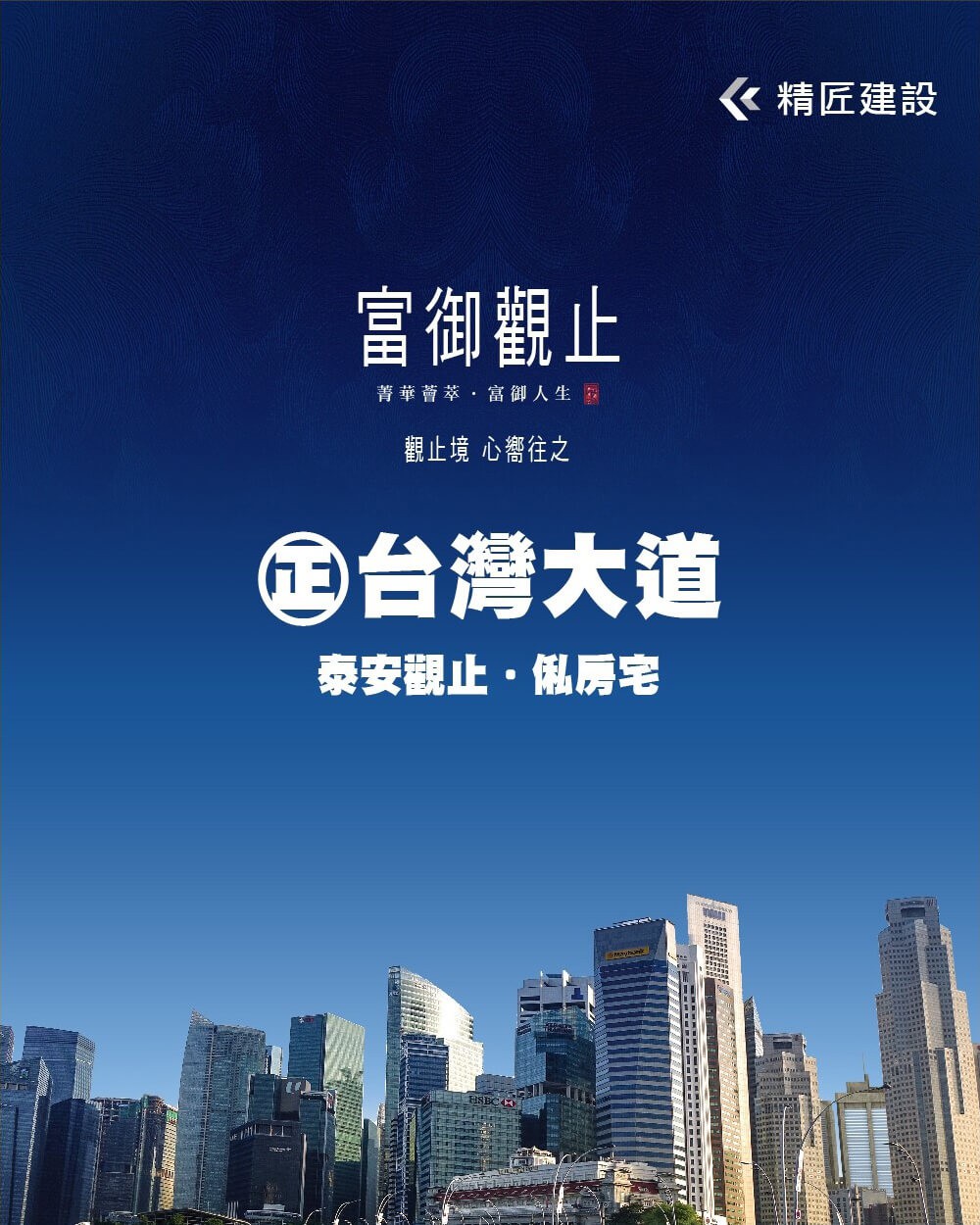 城市闊界,首席風華,位於台中正台灣大道, 繁華咫尺,精緻民生,居於中區精華生活圈, 新貴隱富,傳世築城,成就了精工匠藝的住宅品質, 精華薈萃,富御人生,落款為精美別緻的觀止美學, 五感豐華,細膩生活,專屬於您的俬房寓所。
